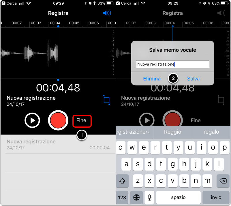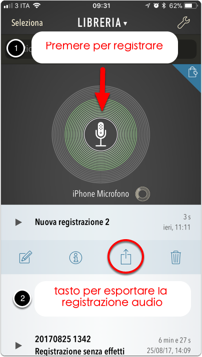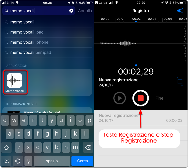 1. Trovare l'app Memo Vocali e registrare un memo