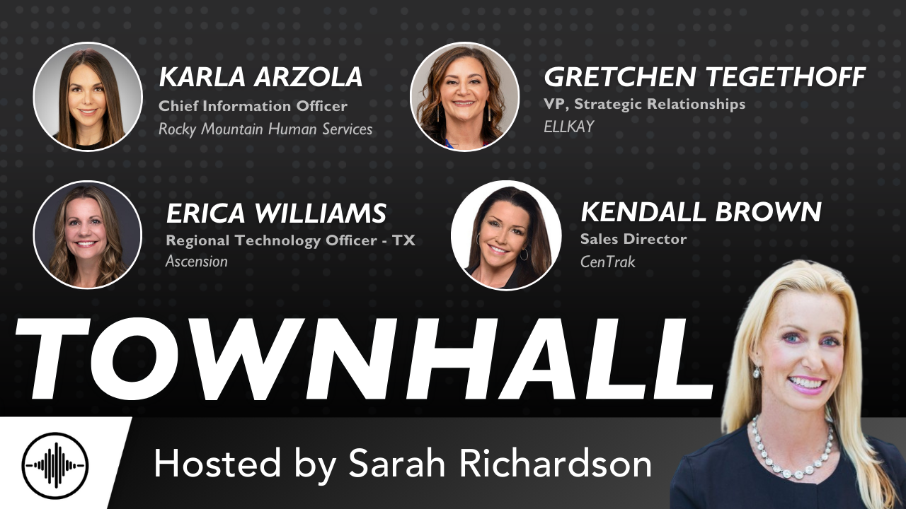 October 15: Today on TownHall Karla Arzola, Chief Information Officer at Rocky Mountain Human Services, Erica Williams, Regional Technology Officer - Texas at Ascension, Kendall Brown, Sales Director at CenTrak, and Gretchen Tegethoff, VP, Strategic Relationships at ELLKAY join Sarah live from SOAR. They discuss their career journeys, focusing on the challenges and triumphs they have faced. What role do mentors and role models play in achieving career success? How do leaders ensure that succession planning and mentorship pave the way for future leaders? The episode highlights the significance of self-care and self-investment, addressing questions about maintaining balance in high-pressure roles. As networking and community-building take center stage, the leaders share thoughts on the importance of staying connected. How can healthcare professionals effectively manage their personal and professional development?