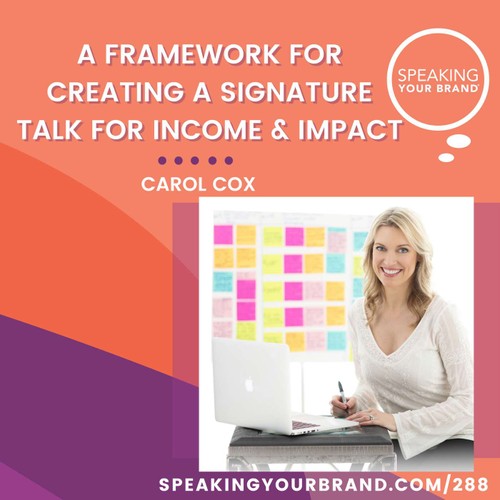 Speaking Your Brand: Public Speaking Tips and Strategies 288: A Framework for Creating a Signature Talk for Income and Impact with Carol Cox